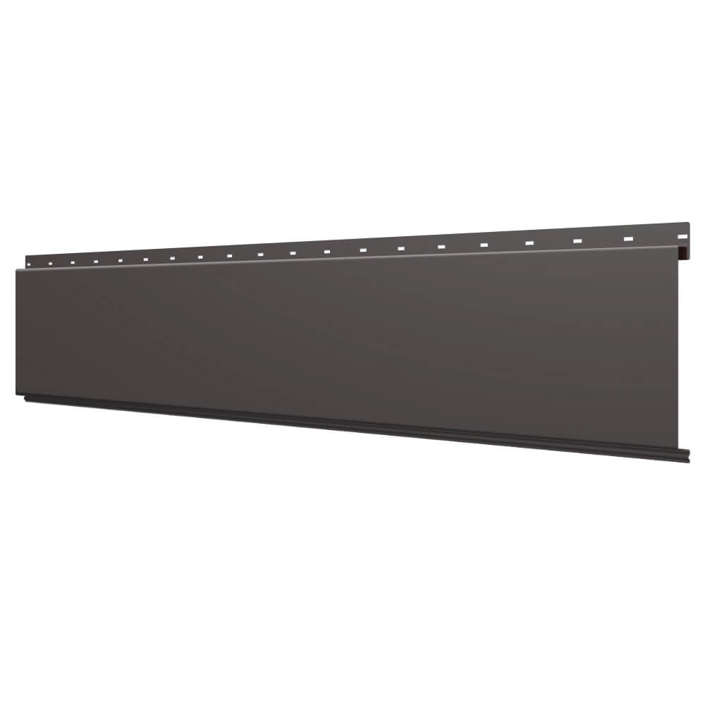 Линеарная потолочно-стеновая панель ГЛАДКАЯ цвет RAL8019 Темный Шоколад применяется в качестве софитов для подшивы крыши, наружной и внутренней отделки потолков, стен, фронтонов фасада дома в Иркутске.