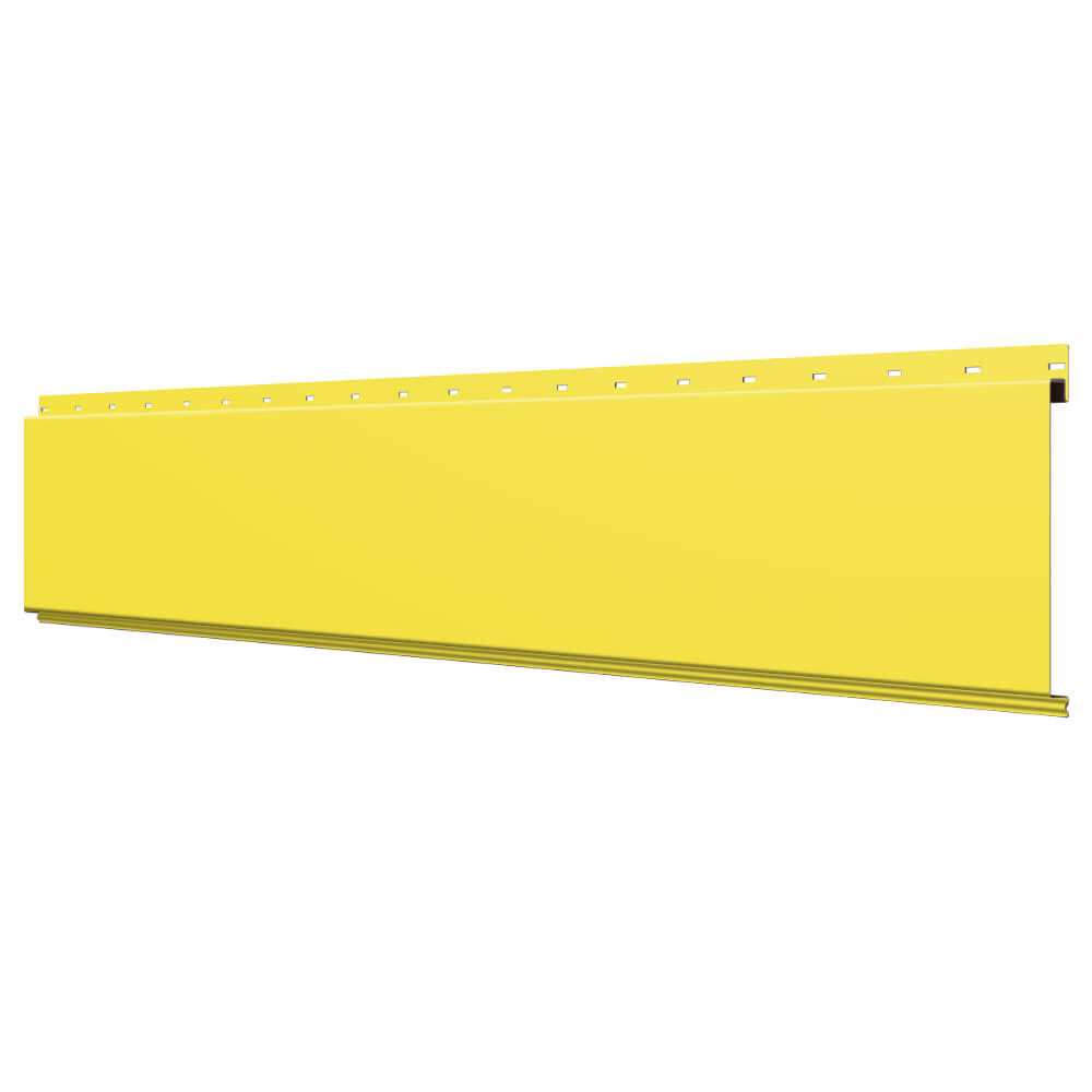 Линеарная потолочно-стеновая панель ГЛАДКАЯ цвет RAL1018 Желтый применяется в качестве софитов для подшивы крыши, наружной и внутренней отделки потолков, стен, фронтонов фасада дома в Иркутске.