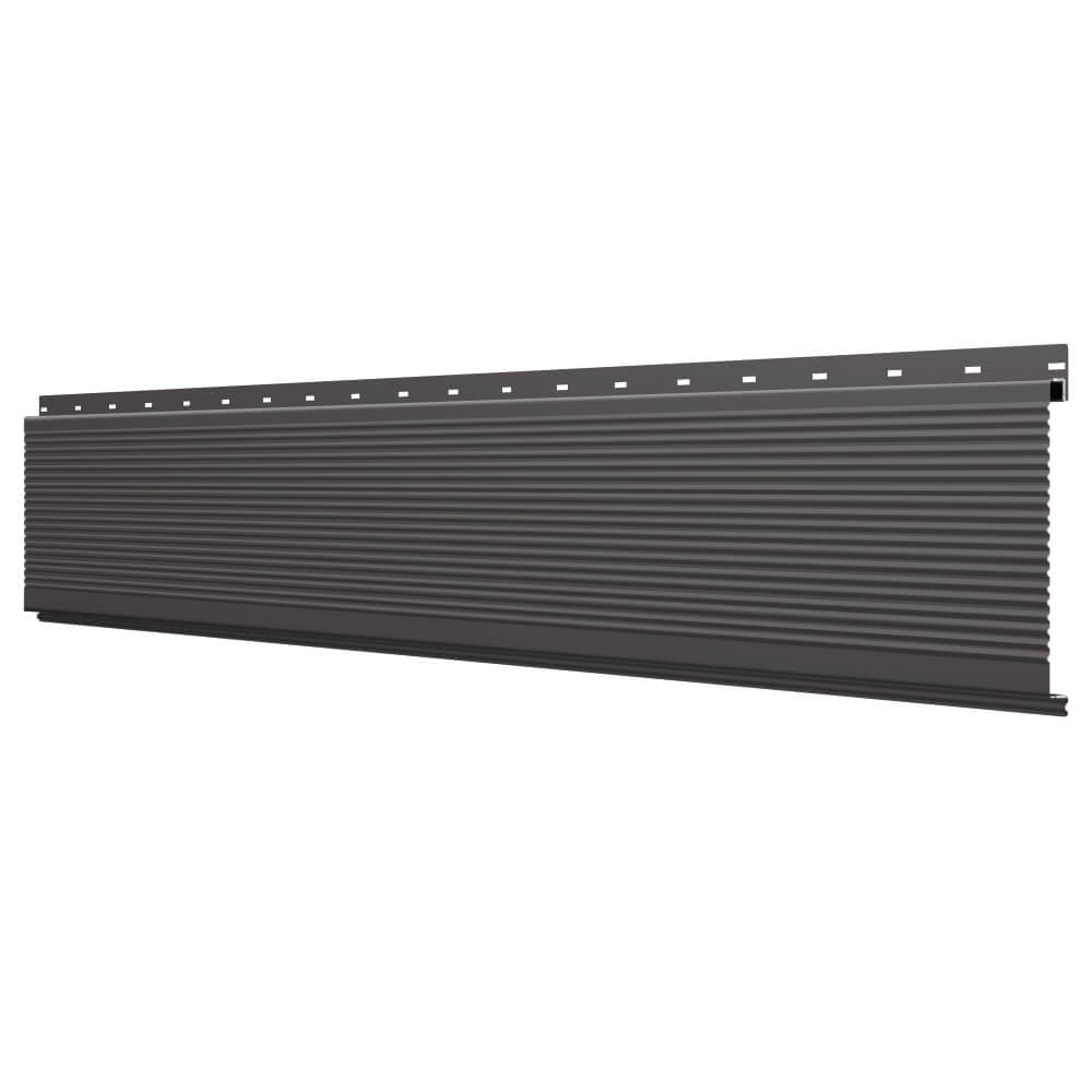 Линеарная потолочно-стеновая панель РИФЛЕНАЯ усиленная цвет RAL8019 Темный Шоколад применяется в качестве софитов для подшивы крыши, наружной и внутренней отделки потолков, стен, фронтонов фасада дома в Иркутске.