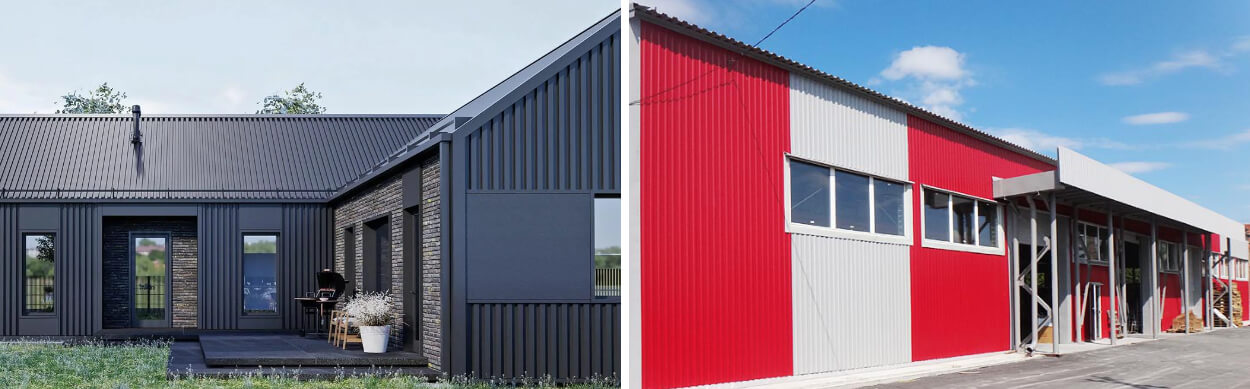 Стеновой профнастил – экономичный вариант отделки фасадной системы. Различное расположение профлиста (вертикальное, горизонтальное или диагональное), угловые элементы, полимерные покрытия в современном стиле придадут облицованному фасаду особую выразительность. Малый вес стенового профнастила позволяет монтировать его на облегченные горизонтальную или вертикальную подконструкции, что значительно удешевляет сметную стоимость строительства в целом.