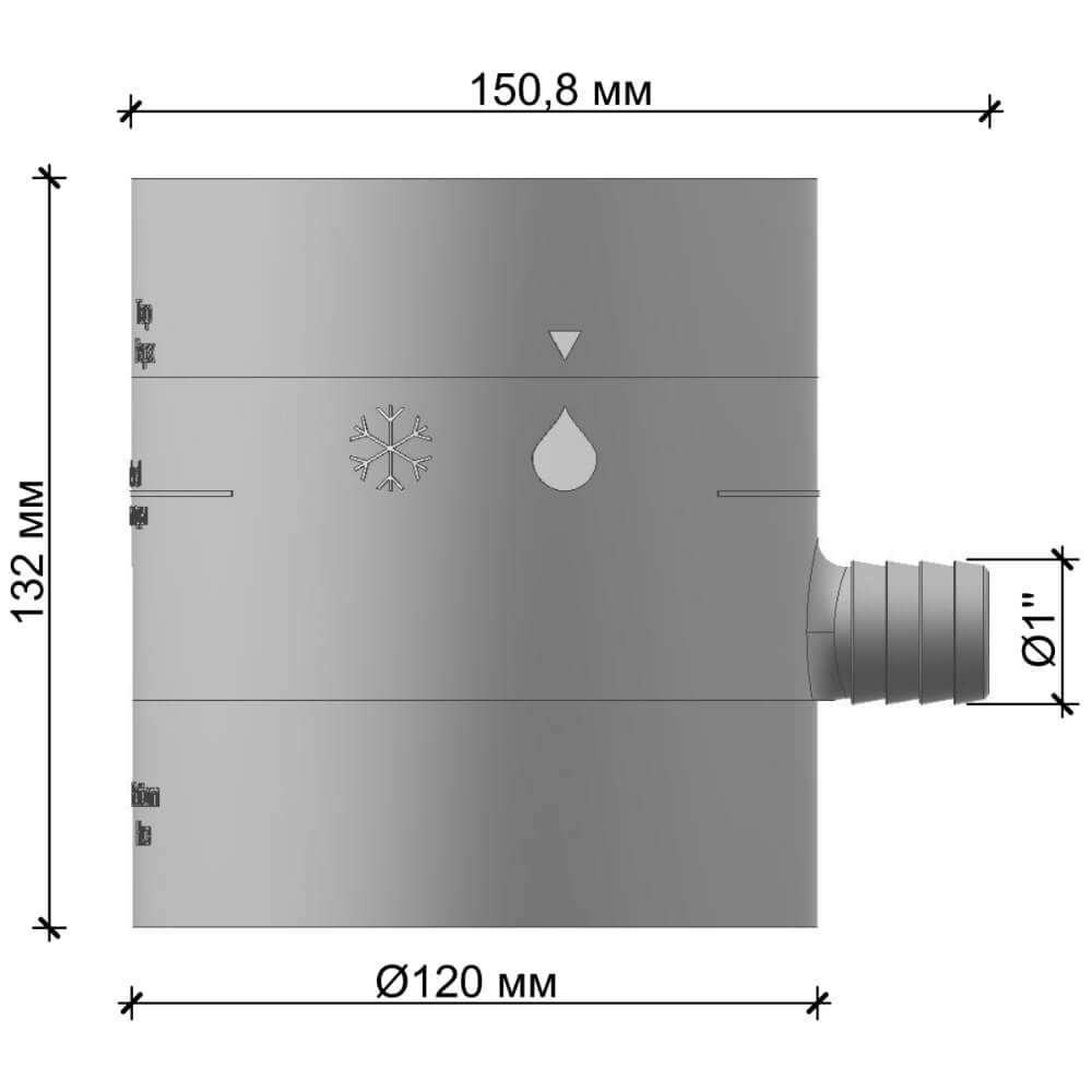Состоит из крышки, стакана для сбора воды и основания. Диаметр подключаемого шланга 1 дюйм (2,54см)