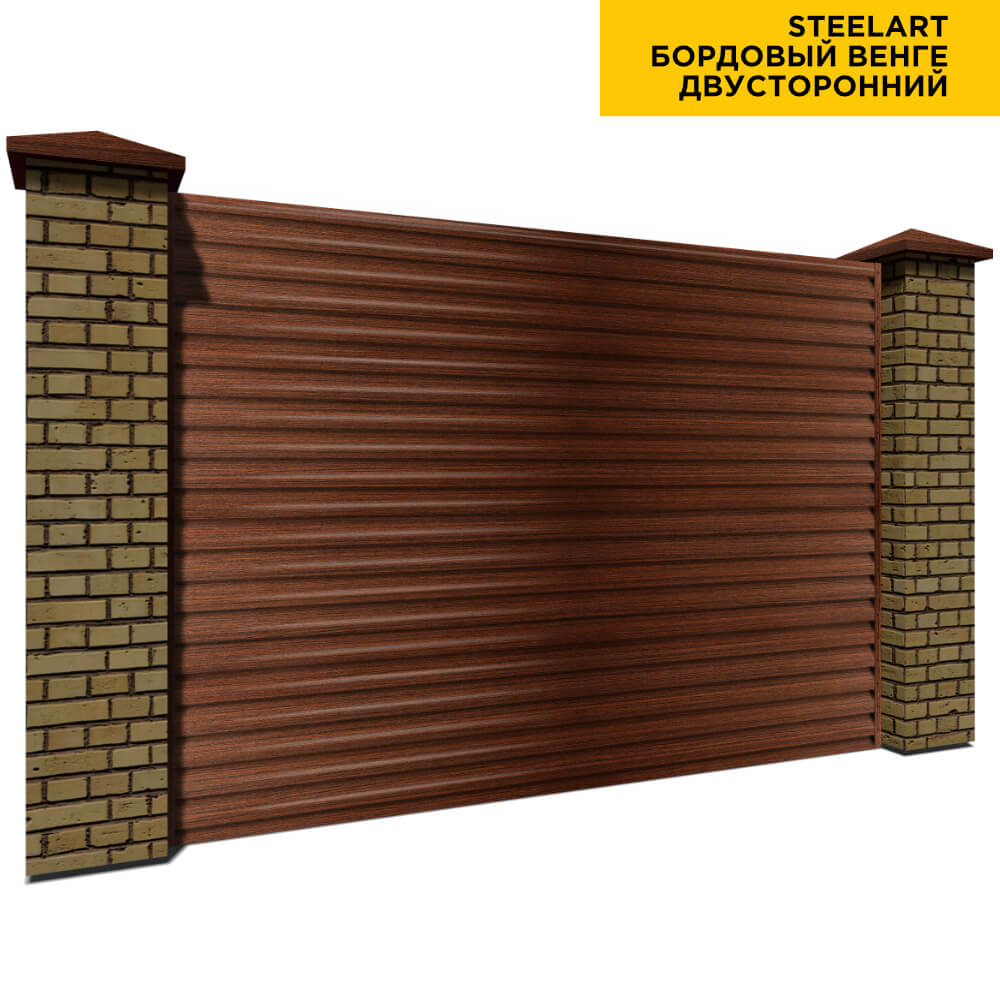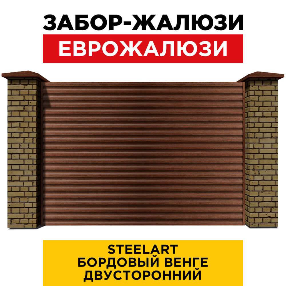 Ламель Еврожалюзи металлическая S-образная, цвет под дерево Бордовый Венге SteelArt Россия двухстороннее покрытие, длина любая кратно 1см под заказ - для забора-жалюзи, беседки, перголы в Иркутске