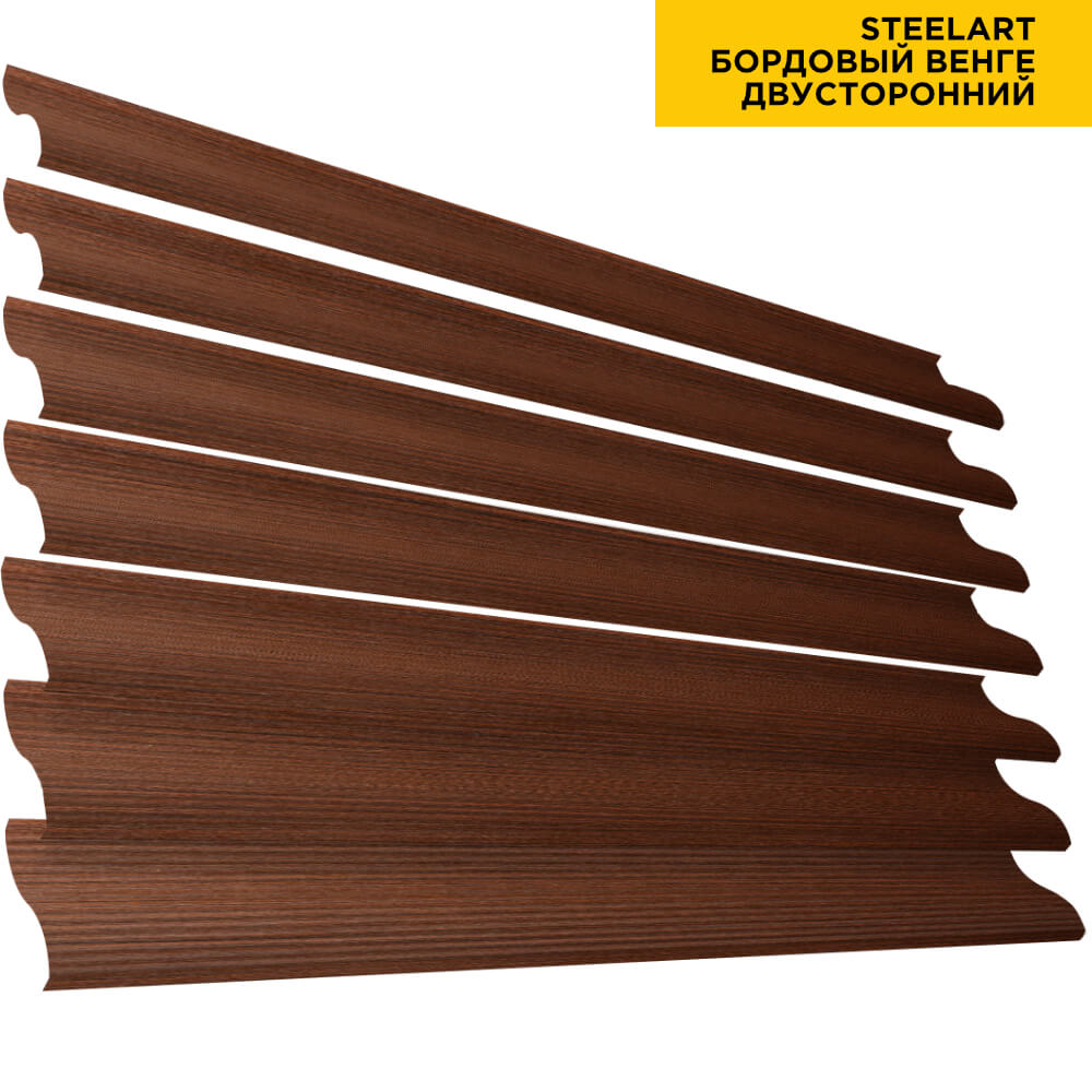 Ламель Еврожалюзи металлическая S-образная, цвет под дерево Бордовый Венге SteelArt Россия двухстороннее покрытие, длина любая кратно 1см под заказ - для забора-жалюзи, беседки, перголы в Иркутске.