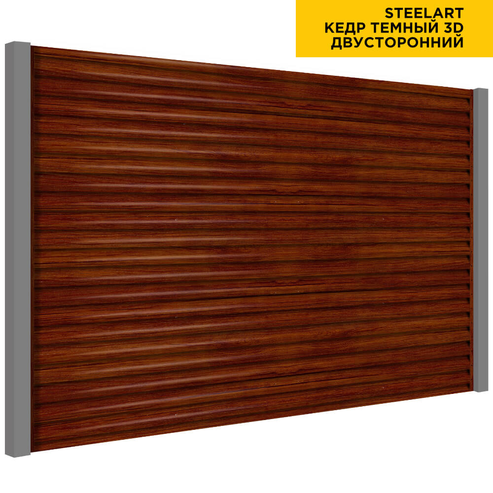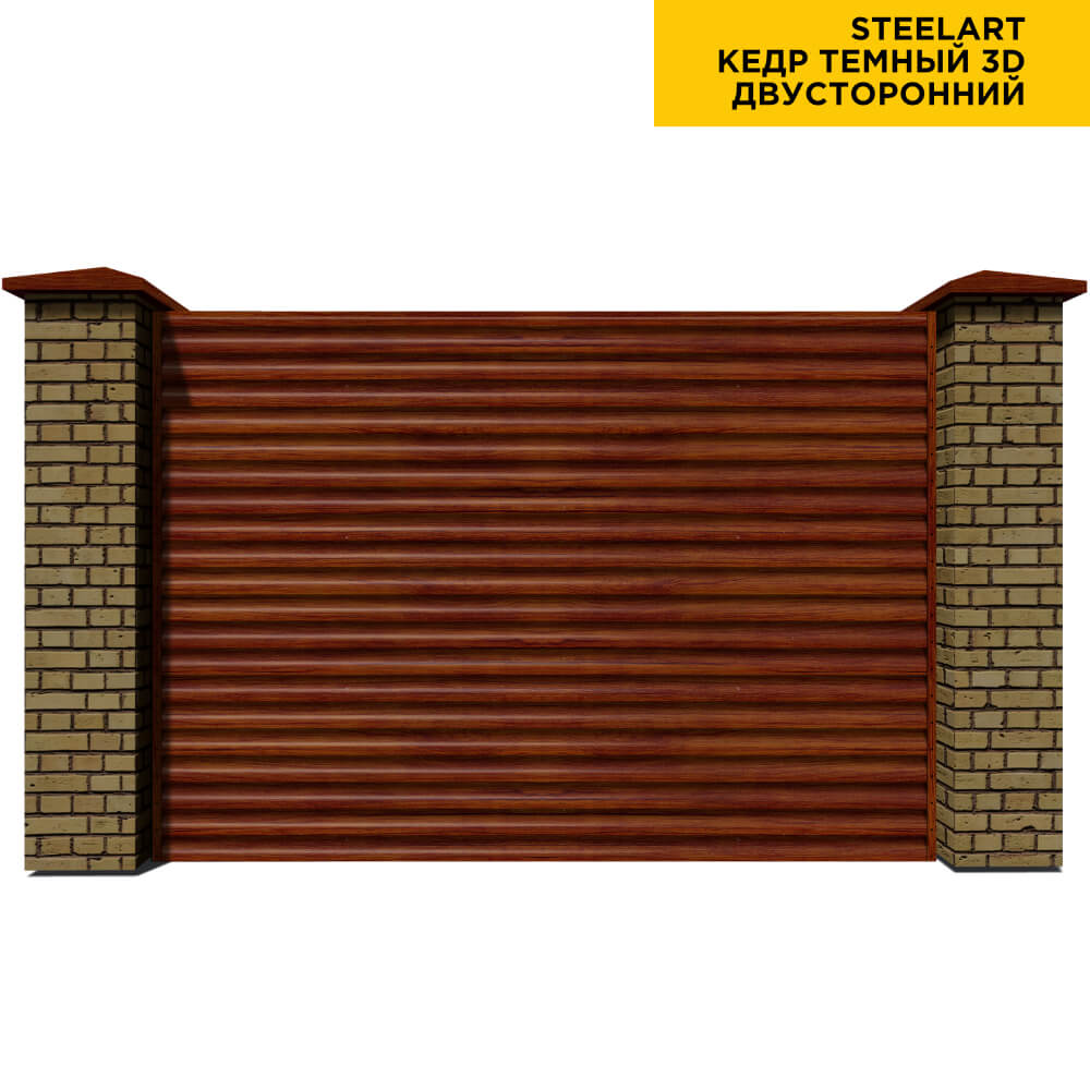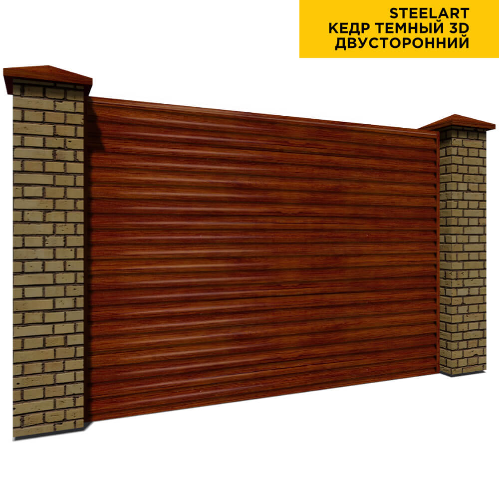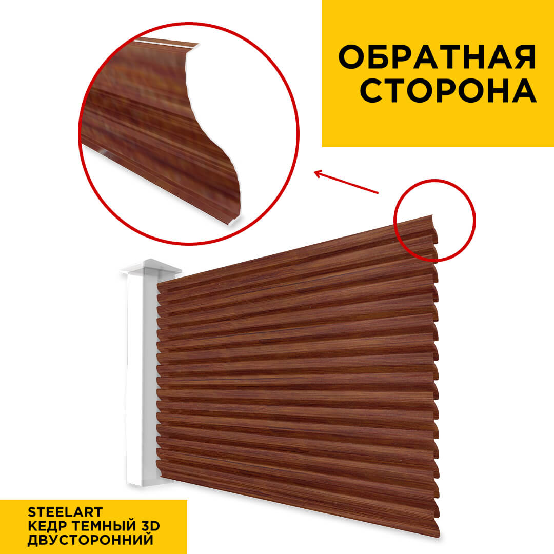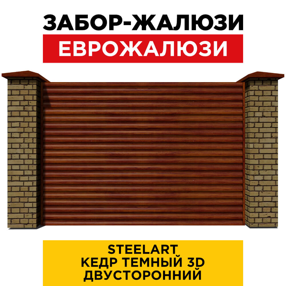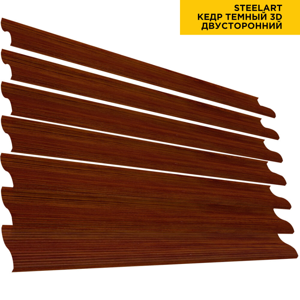Ламель Еврожалюзи металлическая S-образная, цвет под дерево Кедр Темный 3D SteelArt Россия двухстороннее покрытие, длина любая кратно 1см под заказ - для забора-жалюзи, беседки, перголы в Иркутске
