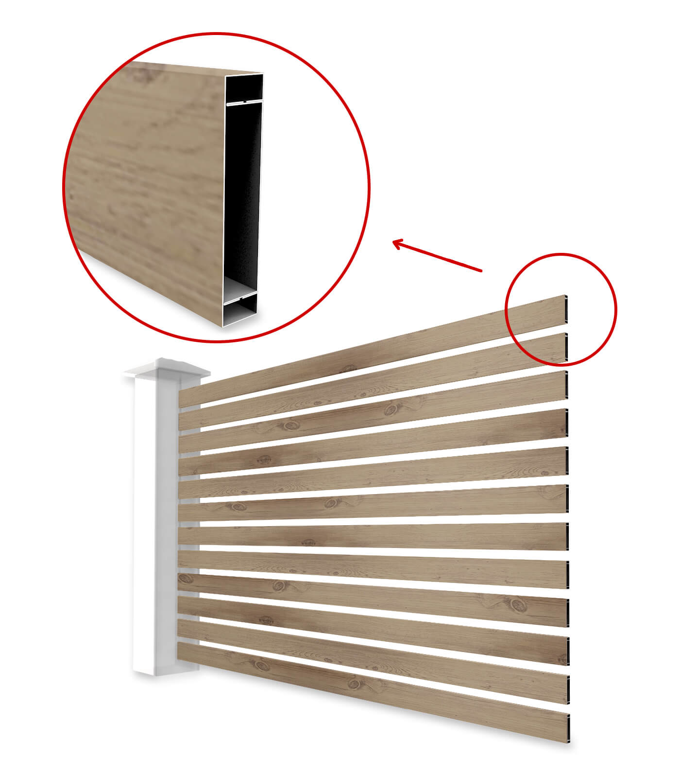 Металлопланкен под дерево Светлый Дуб 3D Принтек на заборе ранчо