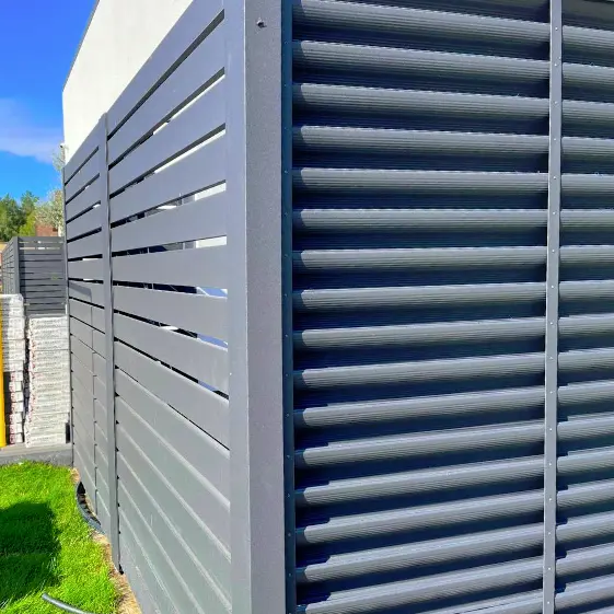 Cовременный комбинированный забор «ранчо-жалюзи», в котором удачно сочетаются ламели Еврожалюзи и Металлопланкен цвет RAL 7024 MATTE Серый Графит матовый. Такое решение объединяет функциональность и эстетичность: конструкция обеспечивает надежную защиту участка, при этом создавая лёгкий визуальный эффект за счёт горизонтальных линий жалюзи. Матовый графитовый оттенок подчёркивает стиль и строгость дизайна, гармонично сочетаясь с природным окружением и современной архитектурой. Этот вариант ограждения подойдёт для тех, кто ценит долговечность, практичность и выразительный внешний вид.
