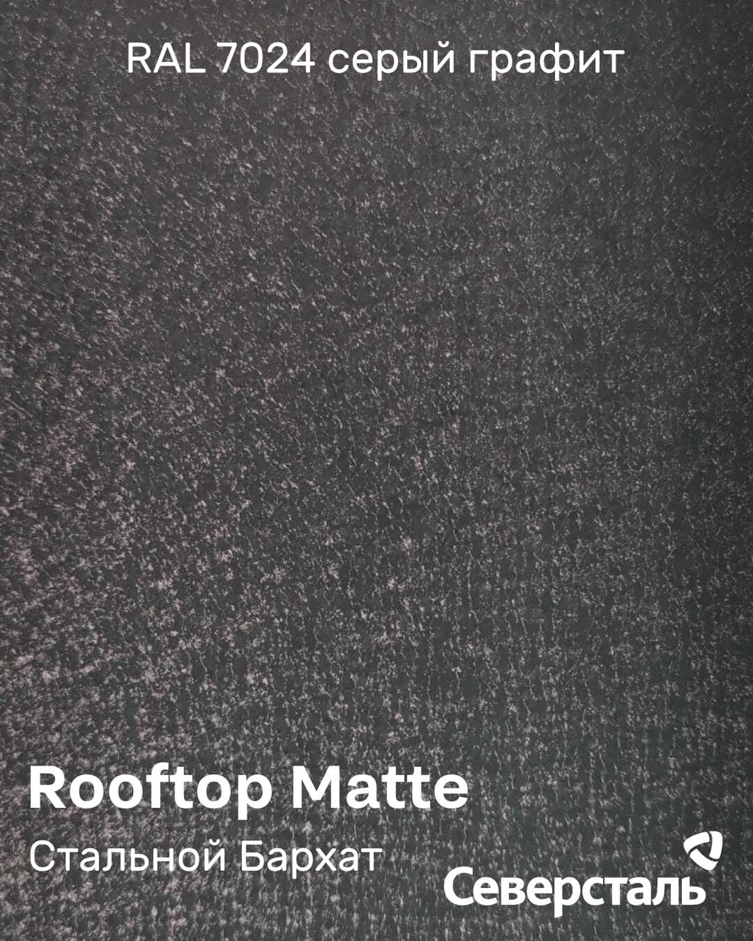 Металлочерепица Rooftop Matte Стальной Бархат в Иркутске - полный каталог и палитра доступных цветов металлочерепицы Монтеррей, Каскад, Банга, Арарат, Геркулес, Геркулес модульный с покрытием Rooftop Matte (Стальной Бархат) производства Северсталь для кровли крыши в Иркутске.